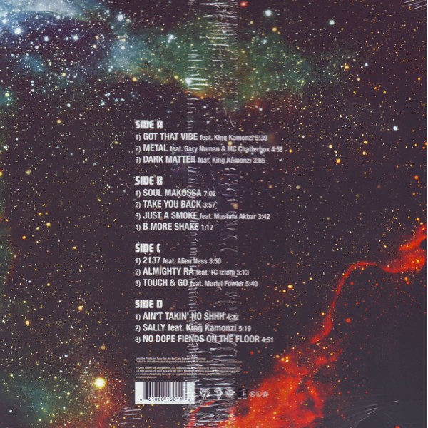 A01. Got That Vibe Featuring – King Kamonzi A02. Metal Featuring – Gary Numan, MC Chatterbox A03. Dark Matter Featuring – King Kamonzi B04. Soul Makossa B05. Take You Back B06. Just A Smoke Featuring – Mustafa Akbar B07. B More Shake C08. 2137 Featuring – Alien Ness C09. Almighty Ra Featuring – T.C. Izlam C10. Touch And Go Featuring – Muriel Fowler D11. Ain't Takin' No Shhh D12. Sally Featuring – King Kamonzi D13. No Dope Fiends On The Floor