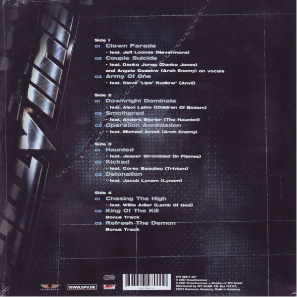 A01. Clown Parade Featuring – Jeff Loomis A02. Couple Suicide Featuring – Angela Gossow, Danko Jones A03. Army Of One Featuring – Steve "Lips" Kudlow B04. Downright Dominate Featuring – Alexi Laiho B05. Smothered Featuring – Anders Björler B06. Operation Annihilation Featuring – Michael Amott C07. Haunted Featuring – Jesper Strömblad C08. Kicked Featuring – Corey Beaulieu C09. Detonation Featuring – Jacob Lynam D10. Chasing The High Featuring – William Adler D11. King Of The Kill (Bonus Track) D12. Refresh The Demon (Bonus Track)