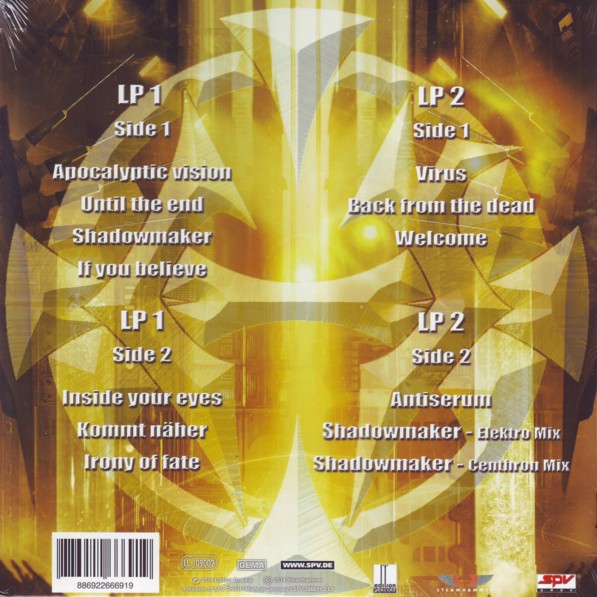 A01. Apocalyptic Vision A02. Until The End A03. Shadowmaker A04. If You Believe B05. Inside Your Eyes B06. Kommt Näher B07. Irony Of Fate C08. Virus C09. Back From The Dead C10. Welcome D11. Antiserum Bonus Tracks: D12. Shadowmaker (Elektro Mix) D13. Shadowmaker (Centhron Mix)