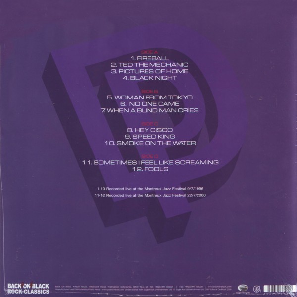 A01. Fireball A02. Ted the mechanic A03. Pictures of home A04. Black night B05. Woman from Tokyo B06. No one came B07. When a blind man cries C08. Hey cisco C09. Speed king C10. Smoke on the water Bonus Tracks: D11. Sometimes I feel like screaming D12. Fools