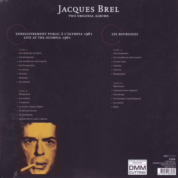LP 1: ENREGISTREMENT PUBLIC A L'OLYMPIA 1961 (LIVE AT OLYMPIA 1961) A01. Les PrEnoms De Paris A02. Les Bourgeois A03. Les PaumEs Du Petit Matin A04. Les Flamandes A05. La Statue A06. Zangra A07. Marieke A08. Les Biches B09. Madeleine B10. Les Singes B11. L'ivrogne B12. La Valse a Mille Temps B13. Ne Me Quitte Pas B14. Le Moribond B15. Quand On N'a Que L'amour