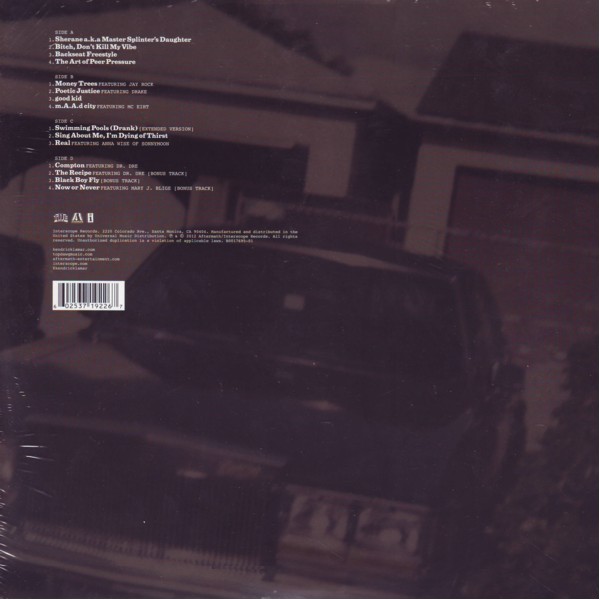 A01. Sherane a.k.a Master Splinter’s Daughter A02. Bitch, Don’t Kill My Vibe A03. Backseat Freestyle A04. The Art Of Peer Pressure B05. Money Trees Featuring – Jay Rock B06. Poetic Justice B07. Good Kid B08. m.A.A.d City Featuring – MC Eiht C09. Swimming Pools (Drank) (Extended Version) C10. Sing About Me, I'm Dying Of Thirst C11. Real Featuring – Anna Wise Of Sonnymoon D12. Compton Featuring – Dr. Dre