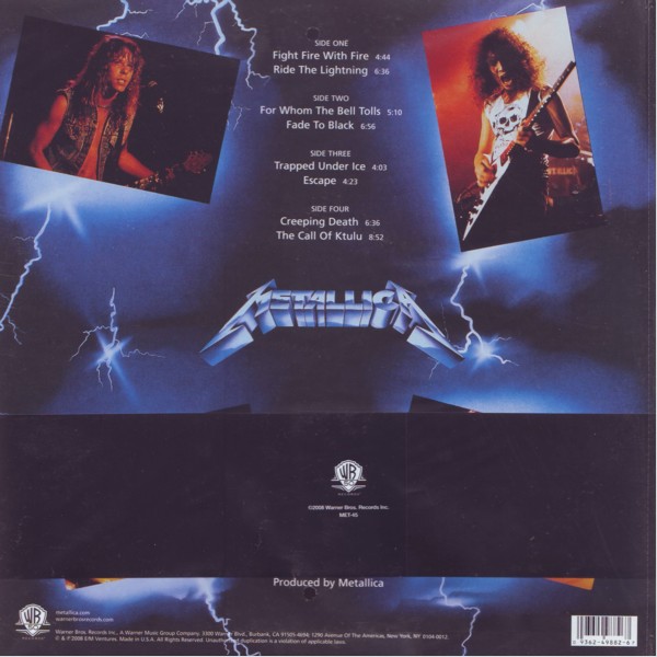 A01. Fight Fire With Fire 4:44 A02. Ride The Lightening 6:36 B03. For Whom The Bells Tolls 5:10 B04. Fade To Black 6:56 C05. Trapped Under Ice 4:03 C06. Escape 4:23 D07. Creeping Death 6:36 D08. The Call Of Ktulu 8:52
