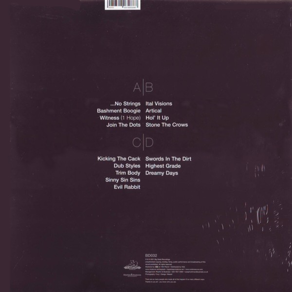 A01. No Strings... A02. Bashment Boogie A03. Witness (1 Hope) A04. Join The Dots B06. Ital Visions B07. Artical B08. Hol' It Up B09. Stone The Crows C10. Kicking The Cack C11. Dub Styles C12. Trim Body C13. Sinny Sin Sins C14. Evil Rabbit D15. Swords In The Dirt D16. Highest Grade D17. Dreamy Days