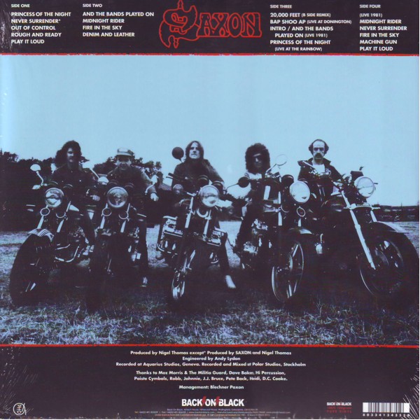 A01. Princess Of The Night A02. Never Surrender A03. Out Of Control A04. Rough And Ready A05. Play It Loud B06. And The Bands Played On B07. Midnight Rider B08. Fire In The Sky B09. Denim And Leather C10. 20,000 Feet (B Side Mix) C11. Bap Shoo Ap (Live At Donington) C12. Intro / And The Bands Played On (Live 1981) C13. Princess Of The Night (Live At The Rainbow) D14. Midnight Rider (Live 1981) D15. Never Surrender (Live 1981) D16. Fire In The Sky (Live 1981) D17. Machine Gun (Live 1981) D18. Play It Loud (Live 1981)