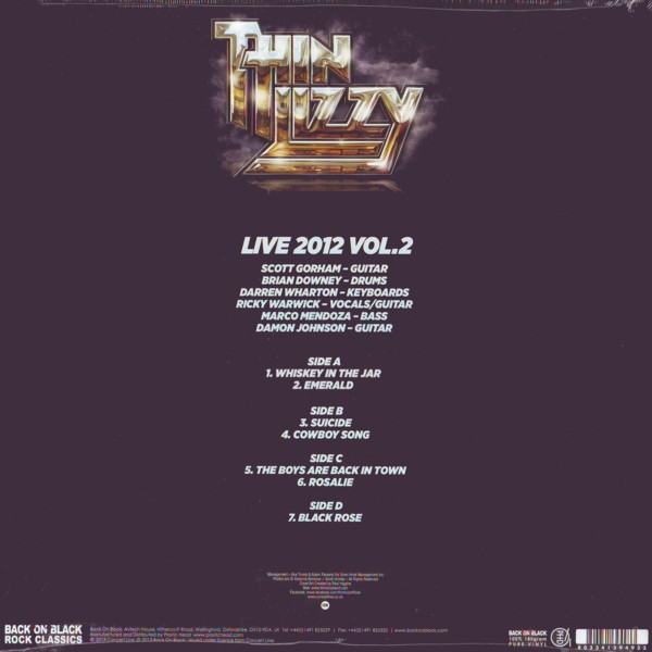 A01. Whiskey In The Jar. A02. Emerald. B03. Suicide. B04. Cowboy Song. C05. The Boys Are Back In Town. C06. Rosalie. D07. Black Rose