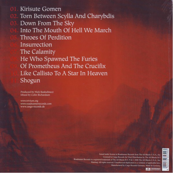 01. Kirisute Gomen 02. Torn Between Scylla And Charybdis 03. Down From The Sky 04. Into The Mouth Of Hell We March 05. Throes Of Perdition 06. Insurrection 07. The Calamity 08. He Who Spawned The Furies 09. Of Prometheus And The Crucifix 10. Like Callisto To A Star In Heaven 11. Shogun