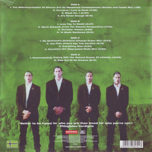 A01. The Misinterpretation Of Silence And Its Disastrous Consequences (Wombs And Tombs Mix) A02. Everyone I Love Is Dead A03. Black No. 1 A04. It's Never Enough