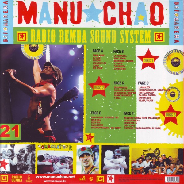 A01. Panik, Panik A02. El Hoyo A03. Peligro A04. Casa Babylon A05. Tumba A06. Mr Bobby B07. La Primavera B08. Radio Bemba B09. Bienvenida A Tijuana B10. El Viento B11. The Monkey B12. Clandestino C13. Desaparecido C14. Rumba De Barcelona C15. La Despedida/Mentira C16. Rainin' In Paradize C17. A Cosa D18. La Vacaloca D19. Hamburger Fields/Merry Blues D20. Tristeza Maleza D21. Dia Luna, Dia Pena D22. Machine Gun D23. Volver, Volver E24. Radio Bemba/Eldorado 1997 E25. Mala Vida E26. Sidi H'Bibi E27. Radio Bemba E28. Forzando Maquina/Mr Bobby F29. Me Quedo Contigo (Si Me Das Elegir) F30. La Vida Tombola F31. L'Hiver Est La F32. Crev' La Vie F33. Pinocchio (Viaggio In Groppa Al Tonno)
