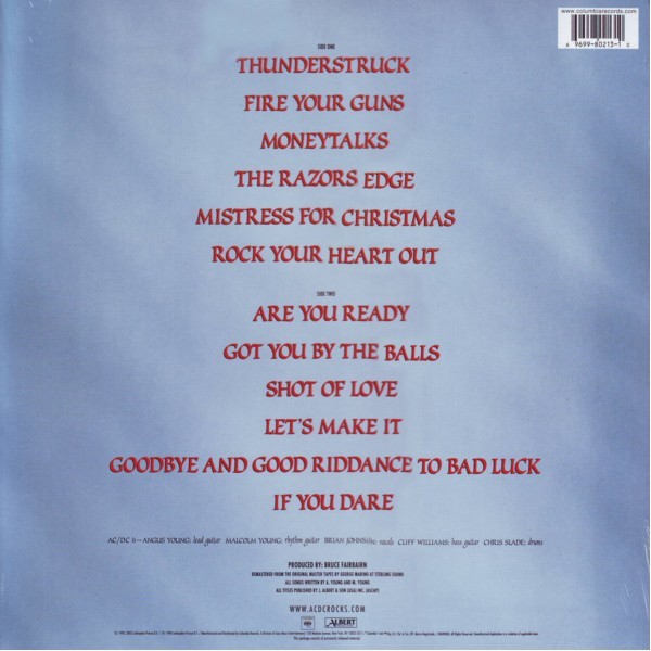 A01. Thunderstruck A02. Fire Your Guns A03. Moneytalks A04. Razor's Edge A05. Mistress For Christmas A06. Rock Your Heart Out B07. Are You Ready B08. Got You By The Balls B09. Shot Of Love B10. Let's Make It B11. Goodbye And Good Riddance To Bad Luck B12. If You Dare