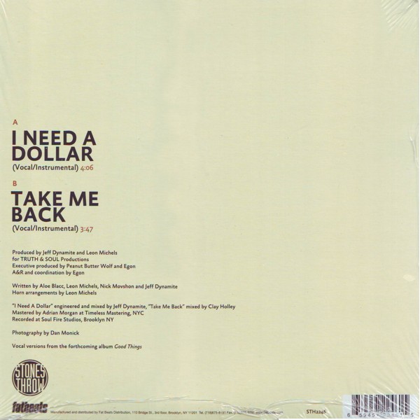 A01. I Need A Dollar A02. I Need A Dollar (Instrumental) B03. Take Me Back B04. Take Me Back (Instrumental)