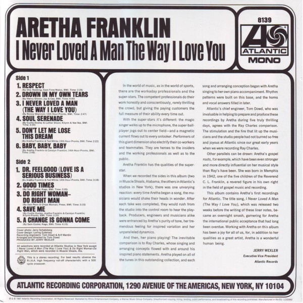 ARETHA FRANKLIN I NEVER LOVED A MAN THE WAY I LOVE YOU