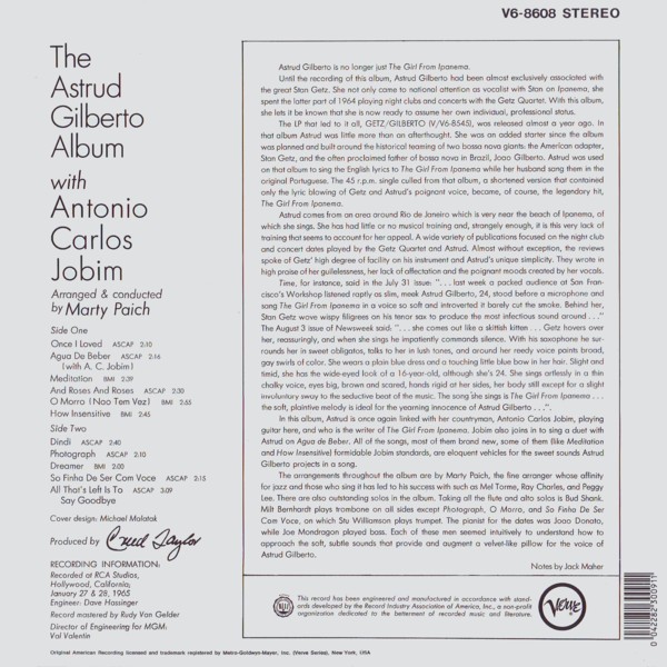 ASTRUD GILBERTO with ANTONIO CARLOS JOBIM THE ASTRUD GILBERTO ALBUM