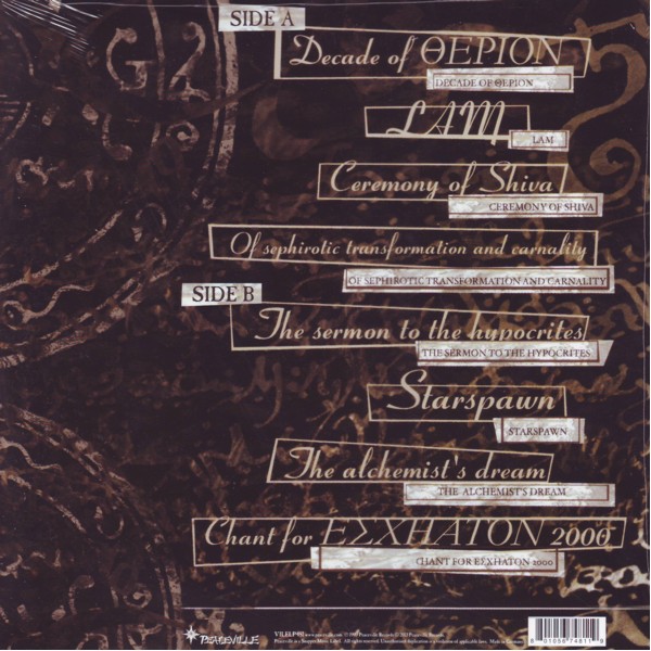 A01. Decade Of Θέριον A02. LAM A03. Ceremony Of Shiva A04. Of Sephirotic Transformation And Carnality B05. The Sermon To The Hypocrites B06. Starspawn B07. The Alchemist's Dream B08. Chant For Έσχατον