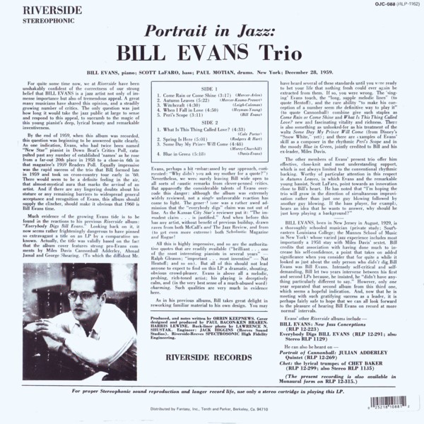 RIVERSIDE/ORIGINAL JAZZ CLASSICS[OJC]/FANTASY © 1959 (2010) Nr.Katalogowy: RLP-1162 (OJC-088) Kod kreskowy: 025218108812