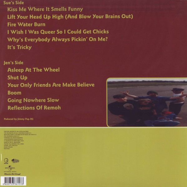 Sue's Side A01. Kiss Me Where It Smells Funny A02. Lift Your Head Up High (And Blow Your Brains Out) A03. Fire Water Burn A04. Yellow Fever A05. I Wish I Was Queer So I Could Get Chicks A06. Why's Everybody Always Pickin' On Me A07. It's Tricky Jen's Side B08. Asleep At The Wheel B09. Shut Up B10. Your Only Friends Are Make Believe B11. Boom B12. Going Nowhere Slow B13. Reflections Of Remoh