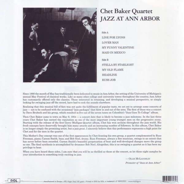 CHET BAKER QUARTET JAZZ AT ANN ARBOR