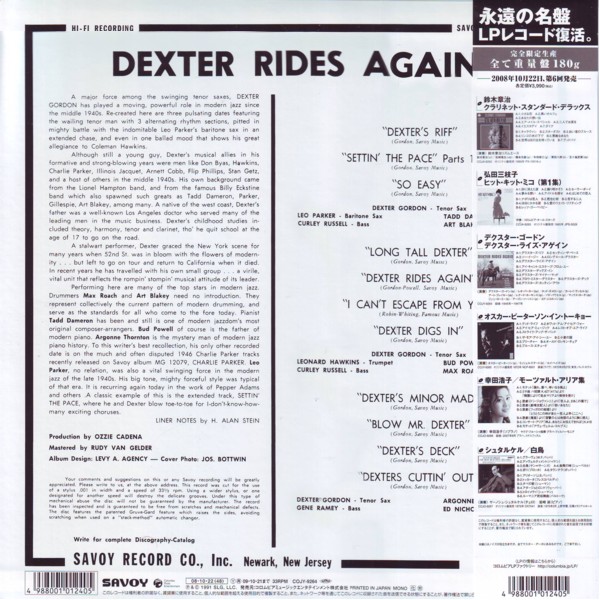 01. Dexter's Riff 02. Settin' the Pace, Parts 1 & 2 03. So Easy 04. Long Tall Dexter 05. Dexter Rides Again 06. I Can't Escape from You 07. Dexter Digs In 08. Dexter's Minor Mad 09. Blow Mr. Dexter 10. Dexter's Deck 11. Dexter's Cuttin' Out
