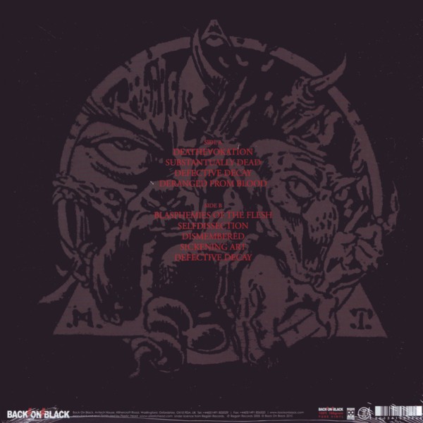 A01. Deathevokation A02. Substantually Dead A03. Defective Decay A04. Dereanged From Blood B05. Blasphemies Of The Flesh B06. Selfdissection B07. Dismembered B08. Sickening Art B09. Defective Decay