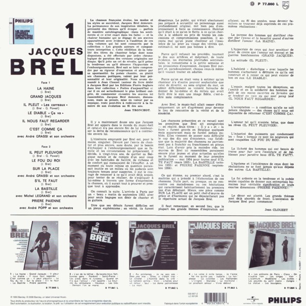 A01. La haine A02. Grand Jacques A03. Il pleut A04. Le diable "сa va" A05. Il nous faut regarder A06. C'est comme зa B07. Il peut pleuvoir B08. Le fou du roi B09. Sur la place B10. S'il te faut B11. La bastille B12. Priere paienne