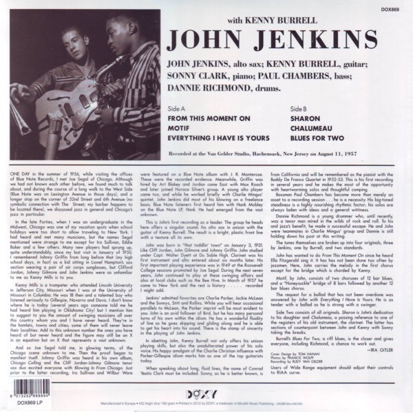 John Jenkins - alto saxophone Kenny Burrell - guitar Sonny Clark - piano Paul Chambers - bass Dannie Richmond - drums