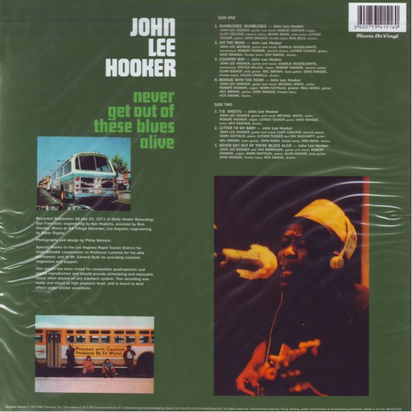 JOHN LEE HOOKER NEVER GET OUT OF THESE BLUES ALIVE