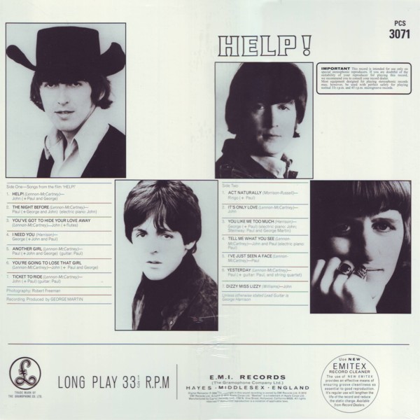 A01. Help! A02. Night Before A03. You've Got to Hide Your Love Away A04. I Need You A05. Another Girl A06. You're Gonna Lose That Girl A07. Ticket to Ride B08. Act Naturally B09. It's Only Love B10. You Like Me Too Much B11. Tell Me What You See B12. I've Just Seen a Face B13. Yesterday B14. Dizzy Miss Lizzy