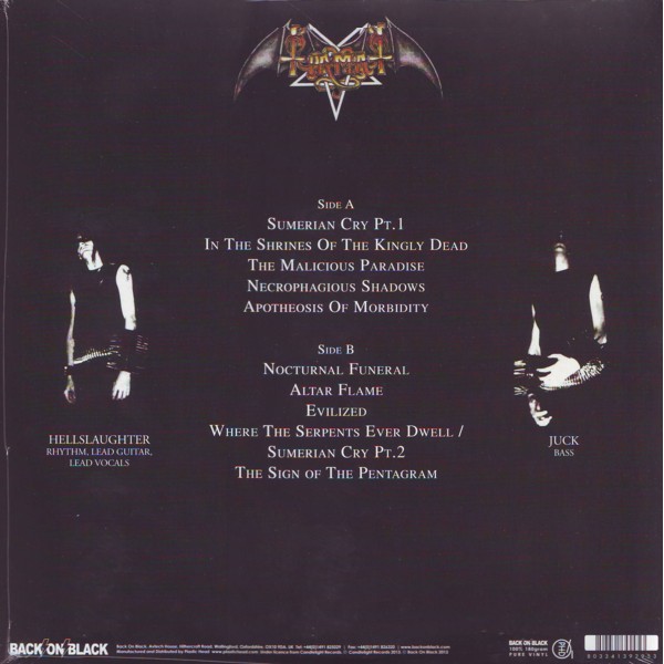 Side Lucifer A01. Sumerian Cry (Part I) A02. In The Shrines Of The Kingly Dead A03. The Malicious Paradise A04. Necrophagious Shadows A05. Apotheosis Of Morbidity Side Darkness B06. Nocturnal Funeral B07. Alter Flame B08. Evilized B09. Where The Serpents Ever Dwell B10. Sumerian Cry (Part II) B11. The Sign Of The Pentagram